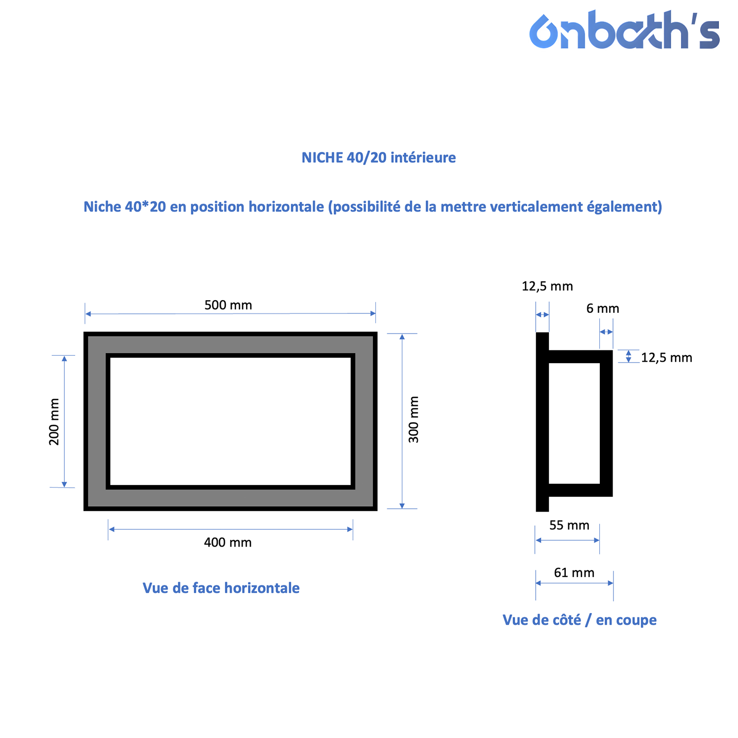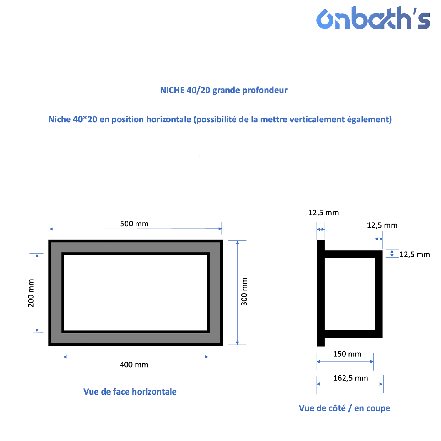 - Niche à carreler étanche 40 × 20 cm – profondeur au choix