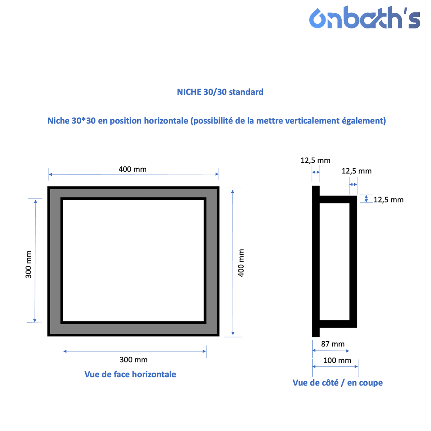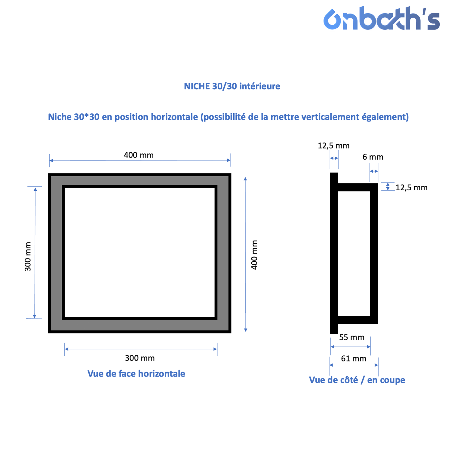 - Niche à carreler étanche 30 × 30 cm – profondeur au choix