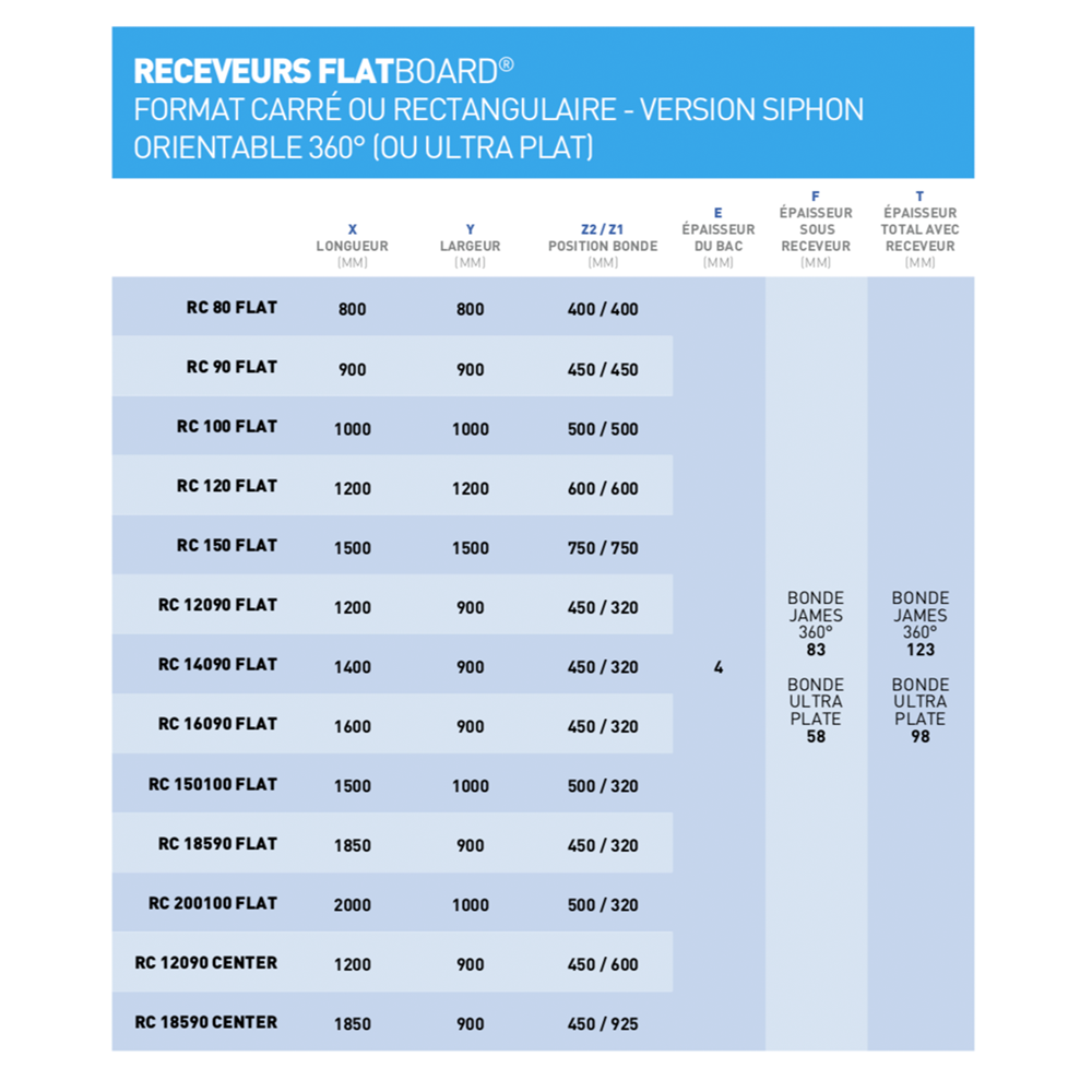 - Receveur à carreler FLAT BOARD